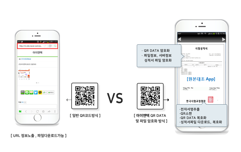 성적서 진위확인 보안 QR 코드로 성적서 위·변조 방지 및 진위 확인 및 성적서 파일 및 데이터에 대한 암호화 적용 보안 QR 제공