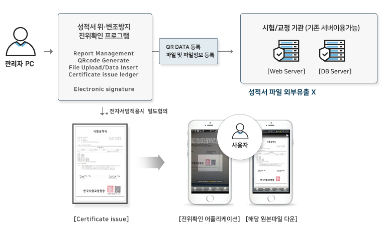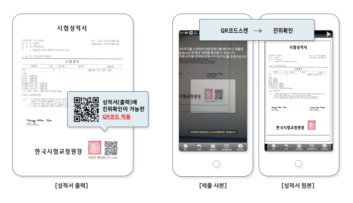 성적서 위·변조를 차단하고, QR 코드 기반 검증으로 언제 어디서나 진위 확인 서비스