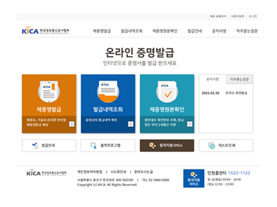 한국정보통신공사협회홈페이지를 통한 온라인 경력신고를 도입하고 제증명 위변조 보안 솔루션을 적용하였습니다. 민원 서류의 전자적 방식의 작성과 제출, 증명서 발급으로 민원 편의성과 업무처리 효율성을 향상시켰습니다.