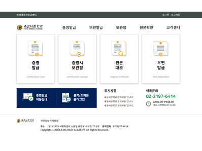 육군사관학교자체 증명발급 시스템 구축을 통한 사용자의 업무 편의성을 제고하고, 위변조 방지 시스템 구축으로 신뢰성 및 안정성을 확보하였습니다.
